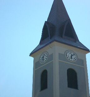 Postavljena su tri sata promjera 100 cm. Svaki sat ima svoj pogonski sklop. Osim satova ugrađena su i elektronska zvona. Korištena je jedna truba s širim pojasom frekvencija tako da imamo zvuk gotovo identičan zvuku klasičnih zvona. Satovima i zvonima upravlja matični sat Tempora.